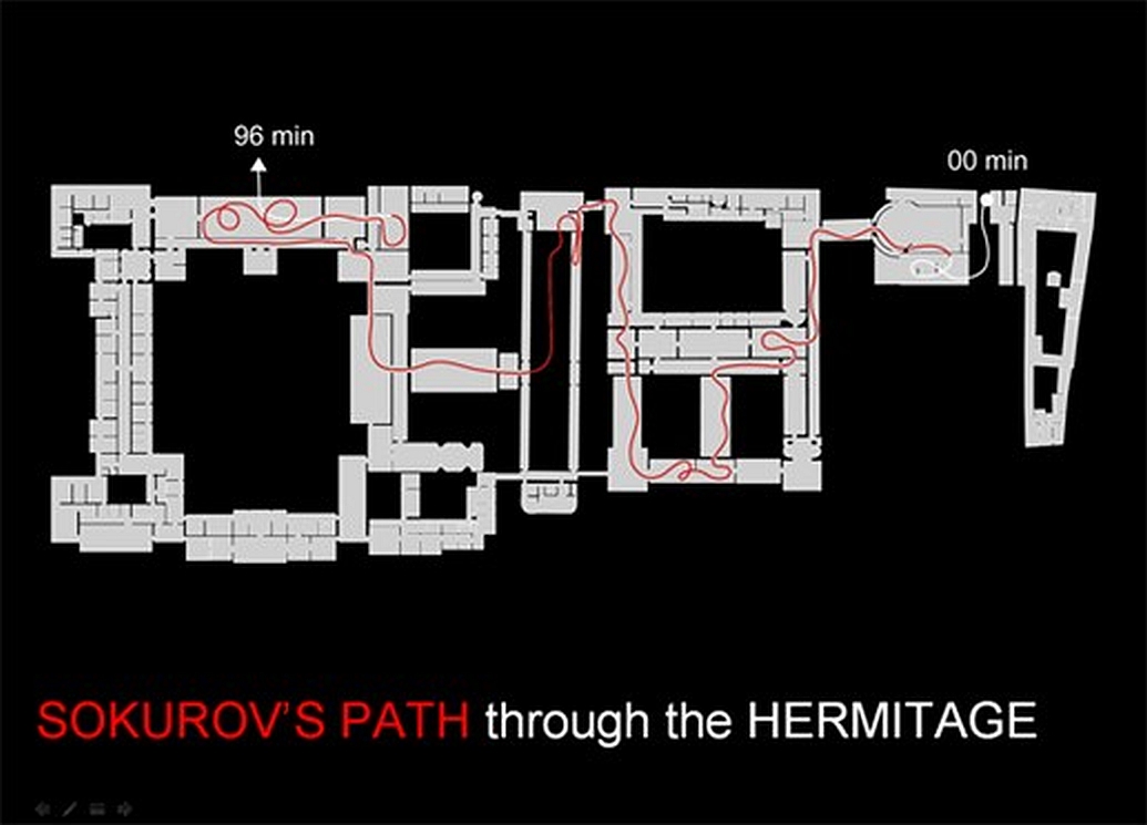 I have to wonder why I’ve been able to find only one small map (I doubled the image size in the attachment below) online showing the camera’s / viewer’s route through the museum. I thought of doing it immediately after I finished watching the movie!