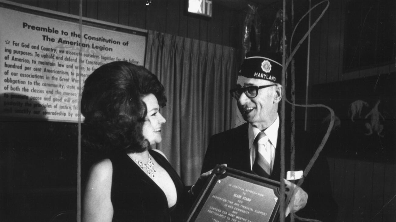 During the height of her popularity, she led parades, cheered for the Orioles, Colts and Bullets, presided over bicycle races and parades, and gave disabled Vietnam veterans a free show at her club. The American Legion gave her awards for humanitarianism. She even appeared in an advertising campaign for Baltimore Gas and Electric Co.