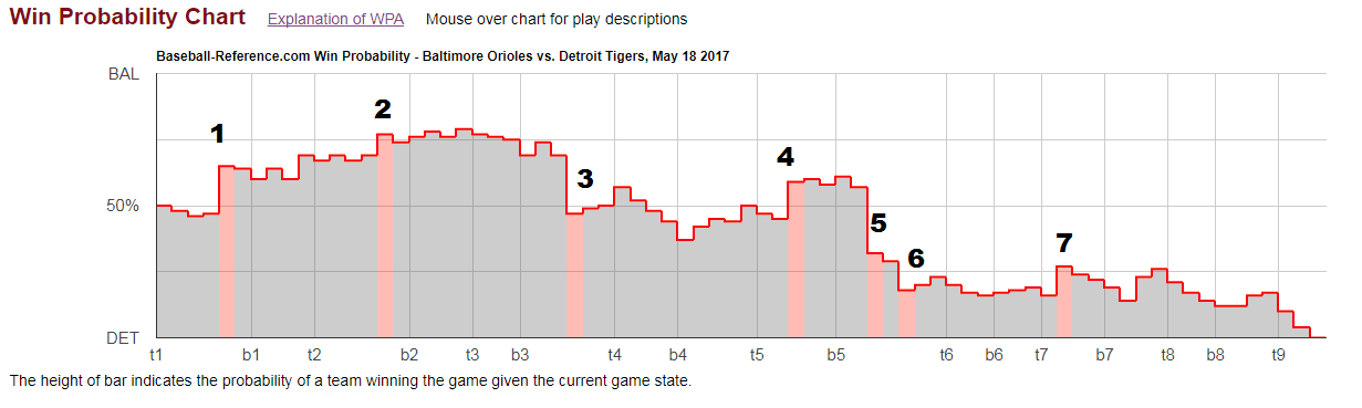 5. Victor Martinez hits a 2-run home run. Tigers 5, Orioles 4 (WPA 0.26, Tigers)