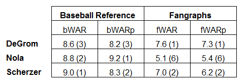 The next highest National League player is J.T. Realmuto of the Marlins at #15…. The awards are going to be interesting this year, because not only is one of these three likely to wind up being the best pitcher in the National League, but the best player overall…..