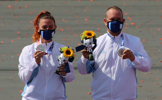 Perilli and Gian Marco Berti win Silver in Mixed Team Trap Shooting.