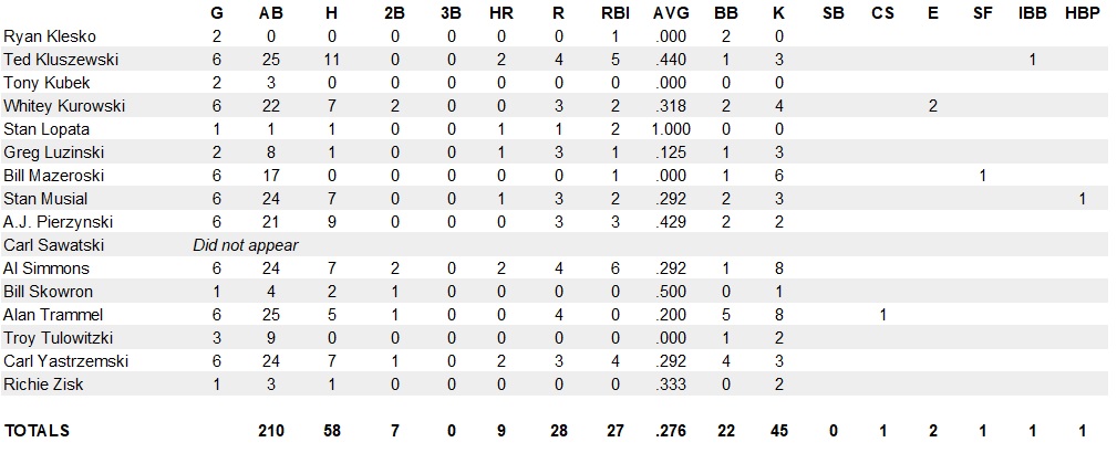 I should also note that I didn’t do much in the way of strategy. When your starting lineup has an AVERAGE “BT” of 32 (corresponding to a .320 batting average), you’re not going to be doing much in the way of bunting… I probably could have done something with defensive shifts, but I didn’t think of it.