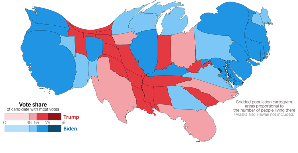 NOTE: Examples use 2020 election results. All but the last map were ‘borrowed’ from World Mapper; the last map came from XKCD.