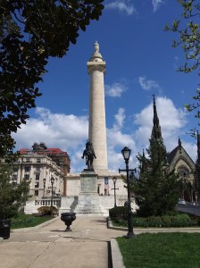 Anyway, Baltimore has its own Washington Monument. Not as big as the one a short drive to the southwest (although designed by the same person), but it is the first monument erected to our first president, so there is that. It’s at the top of a hill in the Mount Vernon section, at the center of a small park / plaza. I did not go inside (I wanted to spend more time at the Walters Art Museum, which is just a block away).