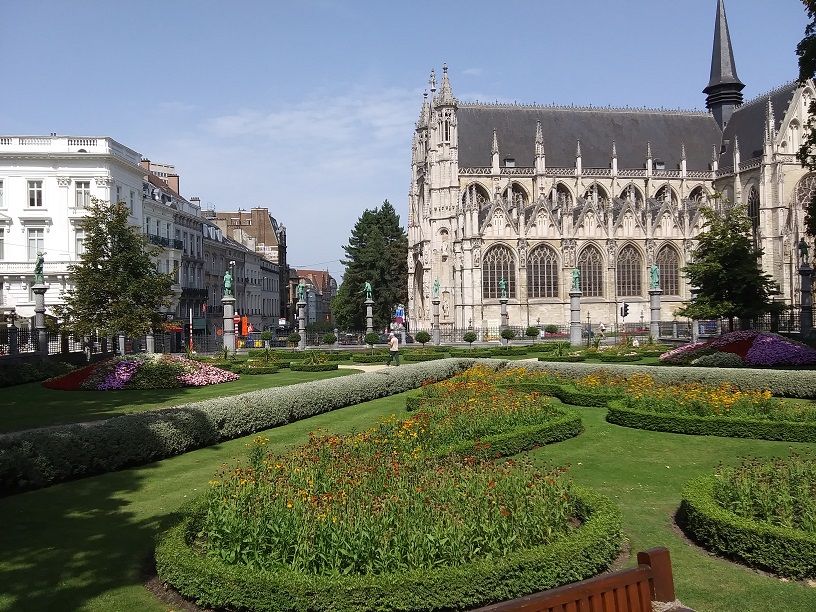 Eventually we made our way to the “Square du Petit Sablon” (i.e. Little Sablon Park). It’s a beautiful park / formal garden, surrounded by statues representing the 48 guilds that have been based in the city, and statues of Belgian notables. There’s also a grand fountain with a statue of Counts Egmont and Hoorne, whose refusal to “follow the Party line” with King Philip II of Spain led to their execution – the start of the Netherlands Revolt. And yes, he’s the Egmont of the Egmont Overture.
