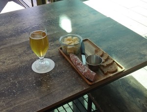 By the way, the bar also offers some food options: cheese, sausage, or cheese AND sausage. The cheese is your basic semi-soft cheddar type; the sausage is a really nice bit of a hard salami-type.